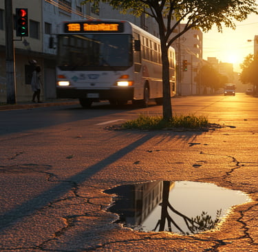 A cidade não é só peso. Ela também oferece pausas invisíveis: o instante em que o olhar repousa na janela embaçada, o reflexo quebrado de um semáforo numa poça d’água, a luz oblíqua do entardecer escapando entre prédios. São fendas pequenas, mas sustentam mais do que parecem.