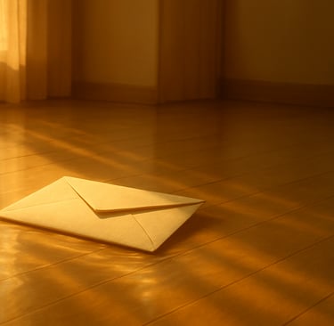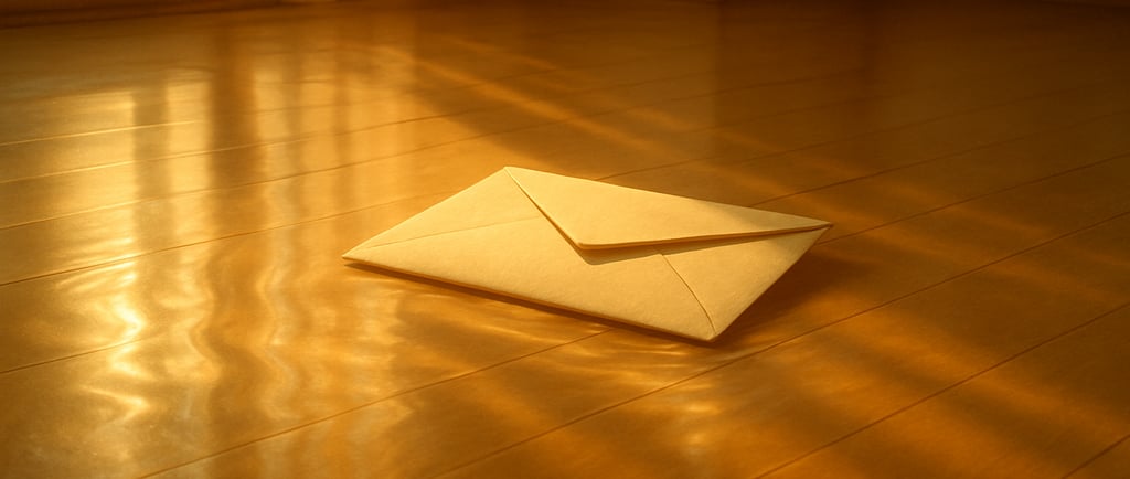 Na mesa, sob a luz de uma tarde luminosa, o envelope repousa. O reflexo da claridade atravessa a madeira e parece redesenhar o silêncio. Ali, o não-dito respira. Não exige explicação. Apenas se sustenta pelo simples ato de continuar fechado.